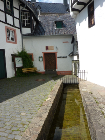 Das Wetter ist - wie bei den meisten Radtouren, die ich im Sommer 2012 unternehme, wechselhaft. Zeitweise ziehe ich die Regensachen an, dann ist es wieder brütend heiß. Blankenheim ist ein malerischer Fachwerkort, in dem die Ahr unter einem Gebäude entspringt.